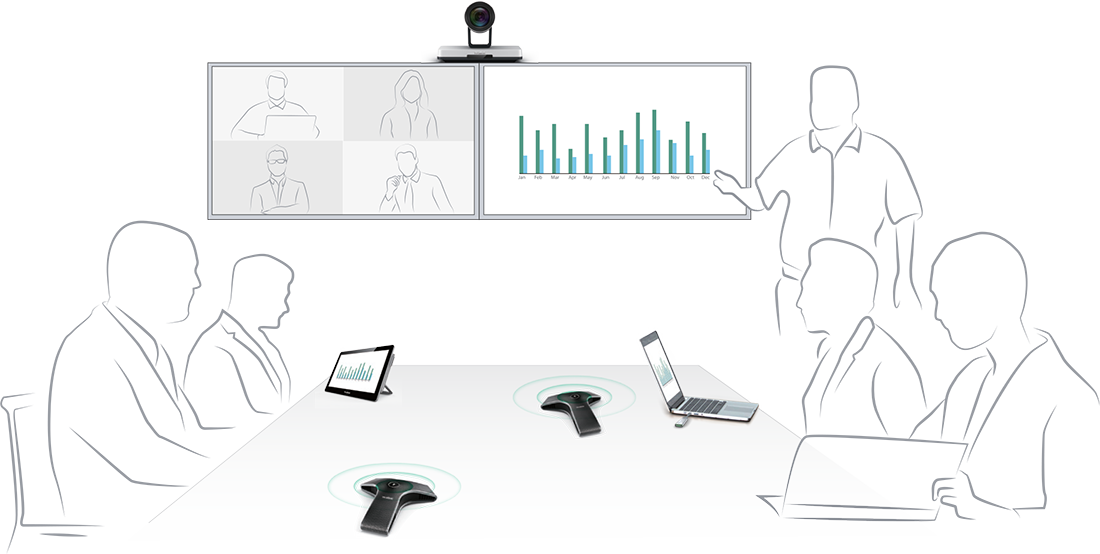 Yealink VC800 room system is designed to solve small and medium company’s multi-party conference needs. Equipped with the powerful built-in MCU, Yealink VC800 supports 24-site HD video conferencing capacity and it can be divided into 2 Virtual Meeting Rooms which perfectly meets modern workplace long-distance communication needs.